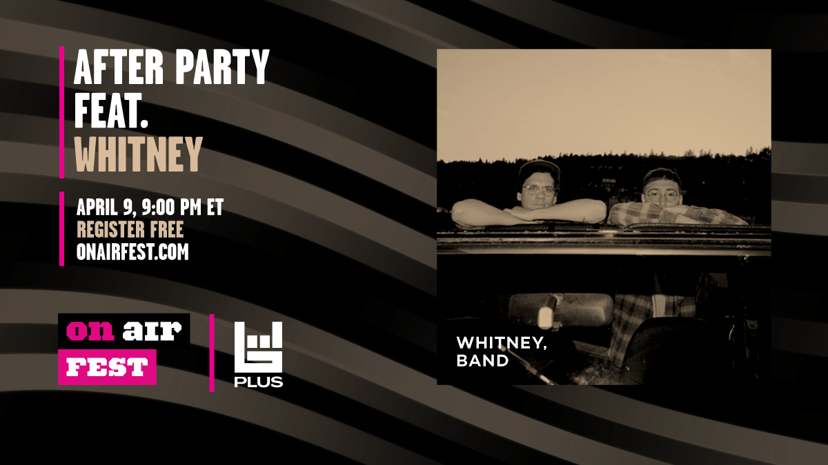 All On Air Fest attendees will get a special code to enjoy, for free, an After Party on Bandsintown PLUS with a DJ set by our PLUS host Elia Einhorn from 8-9 PM ET, followed by a Whitney performance at 9 PM ET.