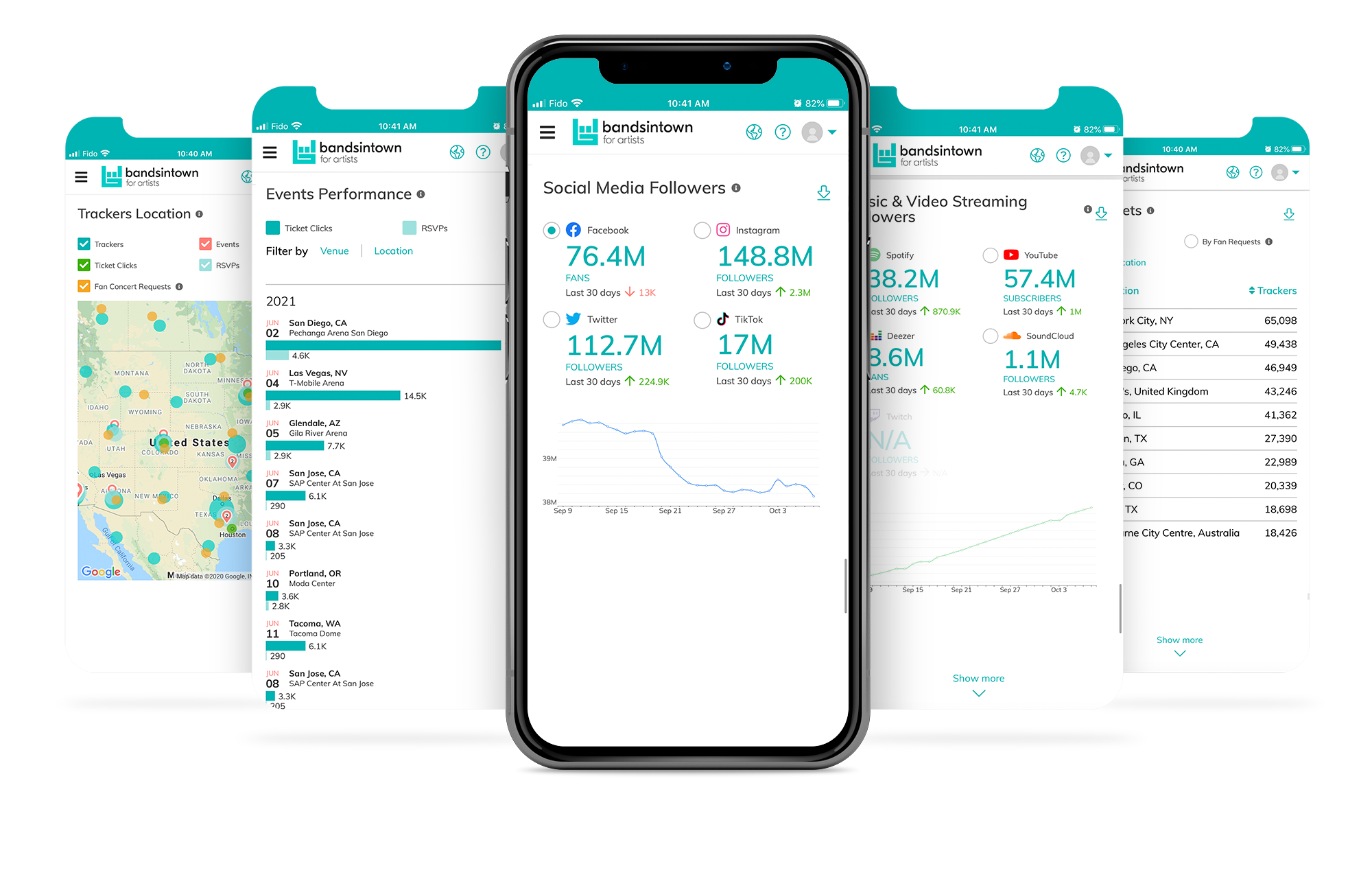 This dashboard will give artists a visual representation of where their followers, upcoming events, ticket clicks, RSVPs and fan requests are at. All you need to do is specify a location by country, state/province or city, and the map will show the data, represented by different colors.
