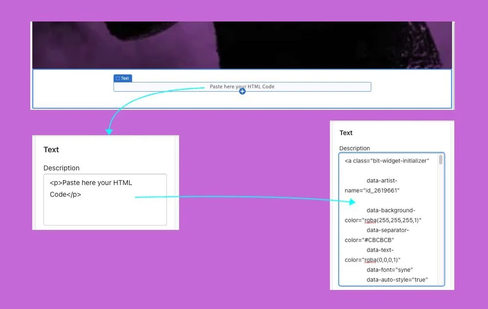 Go to “Text - Description” and Paste your Bandsintown Signup Form code
