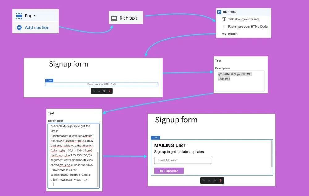 Get set up easily in just a few clicks—no coding required. Customize your form's layout, colors, fonts, and copy to match your aesthetic and voice.