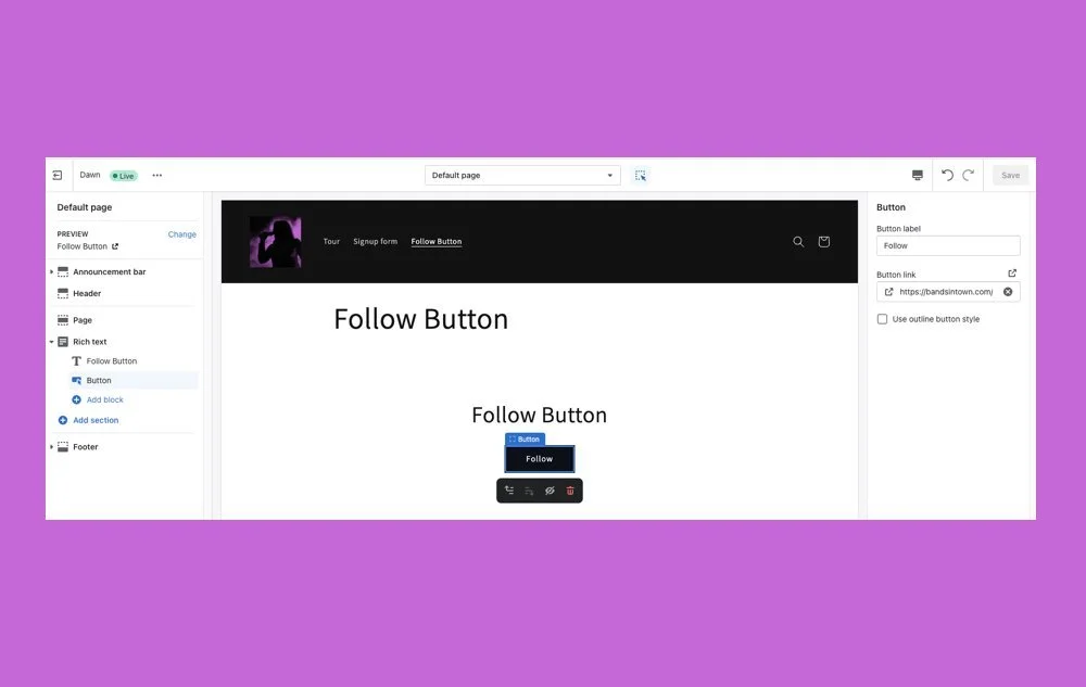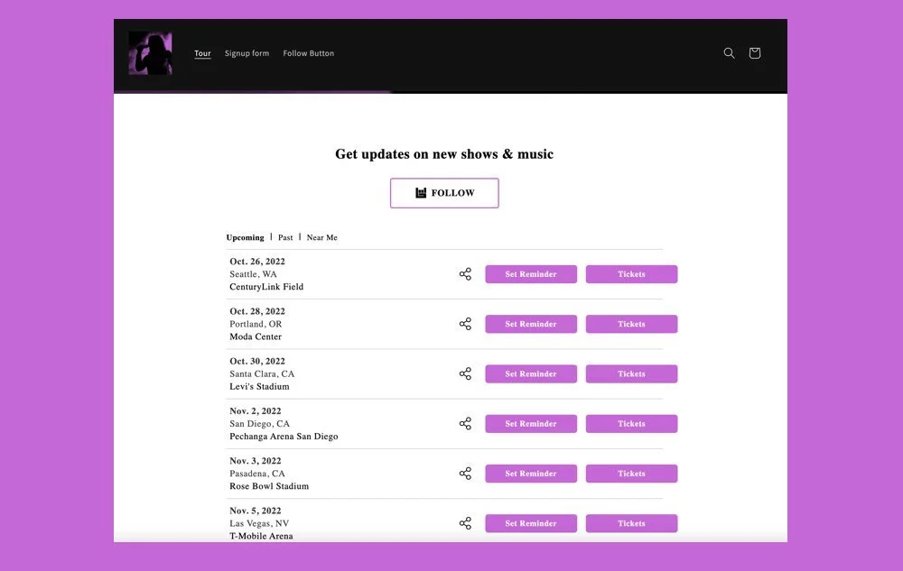 Follow Button: a simple call to action to grow your Bandsintown following while building your contact list