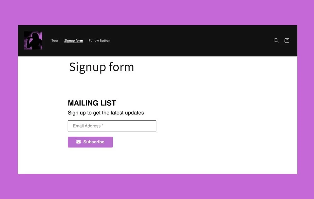 Signup Form: an email signup form to build your contact list while growing your Bandsintown following